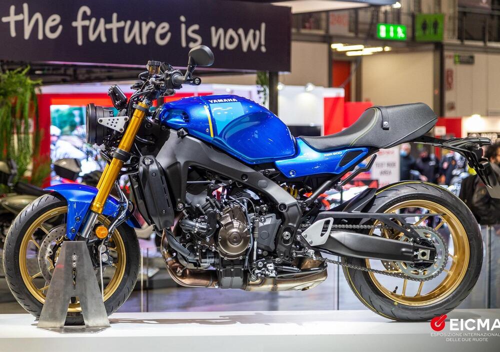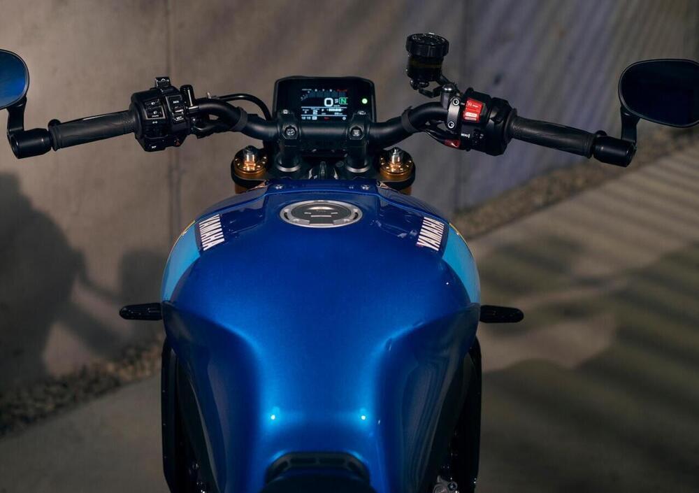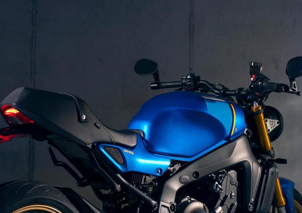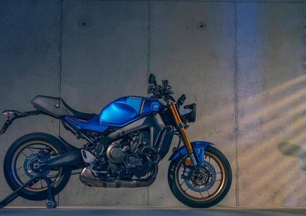 I colori della nuova XSR900 sono il Legend Blue, ciano e giallo con forcella e ruote color oro, e il Midnight Black, con motivi in rosso, forcella e comandi neri.