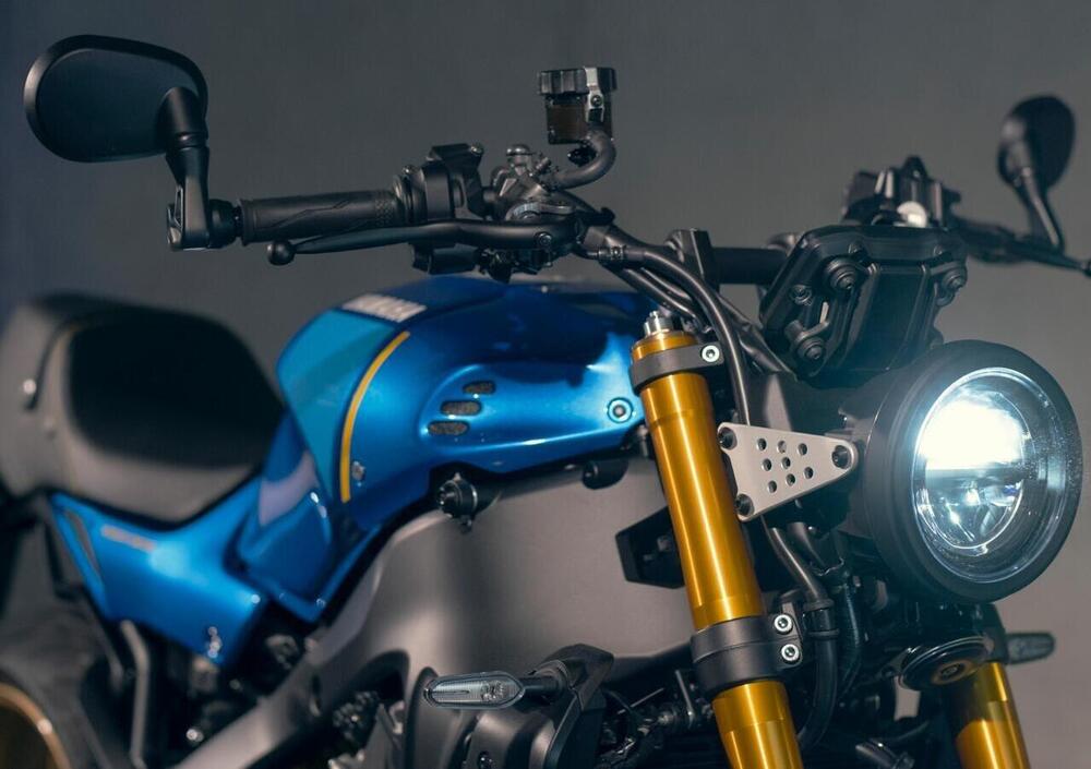Le luci sono full Led e il faro rotondo ha i supporti in alluminio spazzolato. La strumentazione TFT è montata su una nuova piastra forcella, i tappi forcella sono lavorati e il logo XSR è in alluminio.