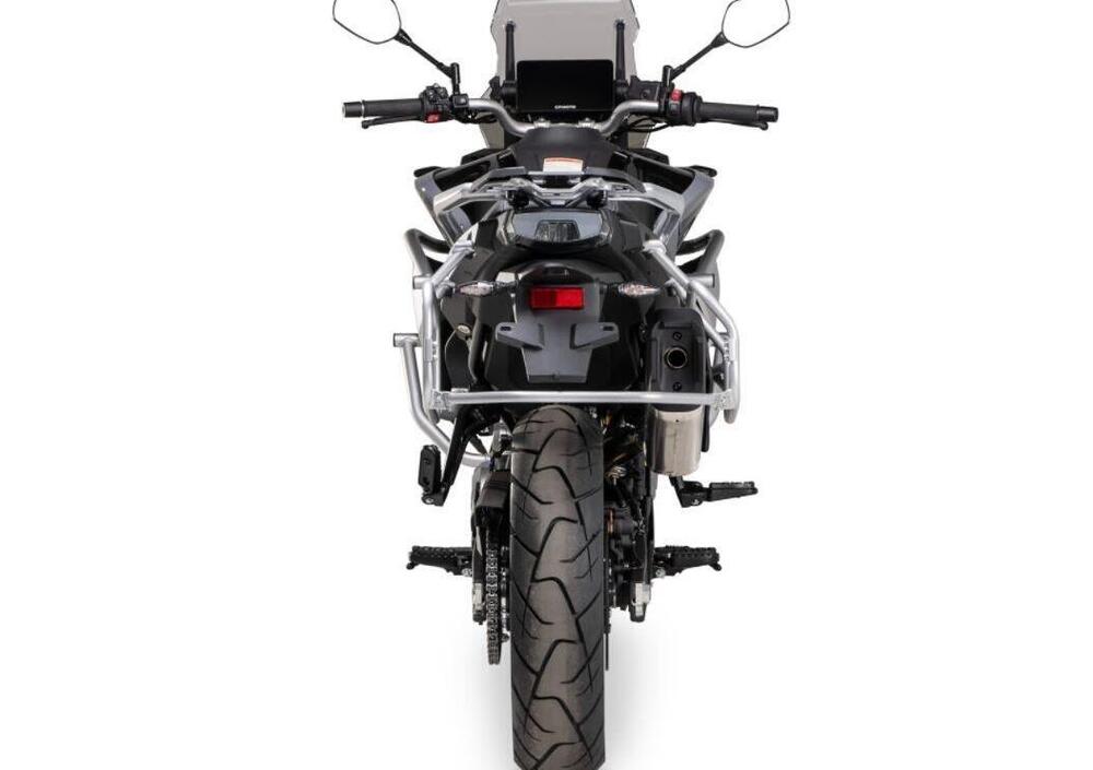 La completa dotazione prevede parabrezza regolabile, ammortizzatore di sterzo, cornering ABS, acceleratore elettronico due mappe motore, cruise control, strumentazione con TFT a colori da 7 pollici con navigatore integrato, quick-shift bidirezionale, selle e manopole riscaldabili, luci full led e DRL e sensori pressione pneumatici.