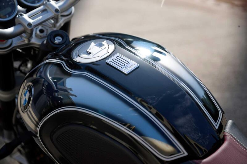 Sulla R nineT 100 Years, come sulla R 18 100 Years, il serbatoio è una combinazione di nero con cromo e un doppio filetto bianco ed è completato da protezioni nella zona delle ginocchia e dal badge 100 Years. La cromatura è presente anche sulla gobba della sella.