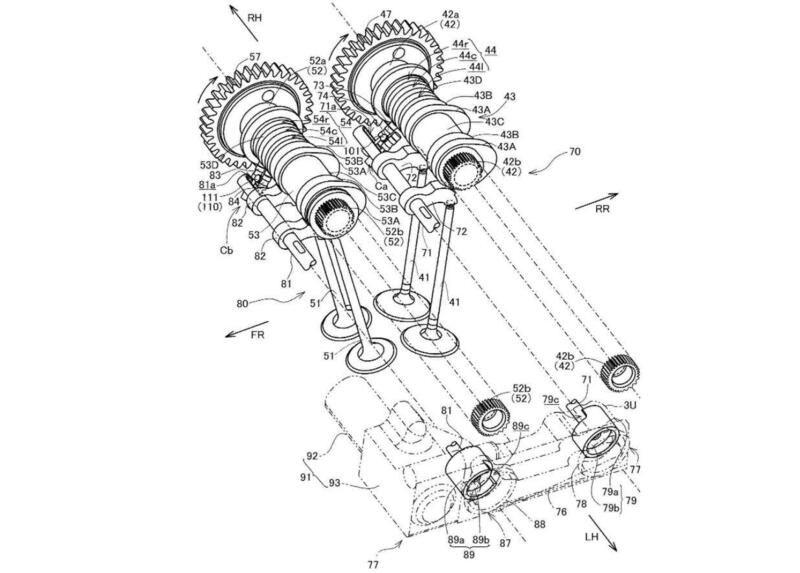 Sempre dall'ufficio brevetti giapponese arrivano altri brevetti depositati da Honda nel 2020, ma pubblicati appunto quest'anno, relativi a un motore a quattro cilindri in linea che potrebbe rimpiazzare l'attuale unità presente sulla serie CBR1000RR.