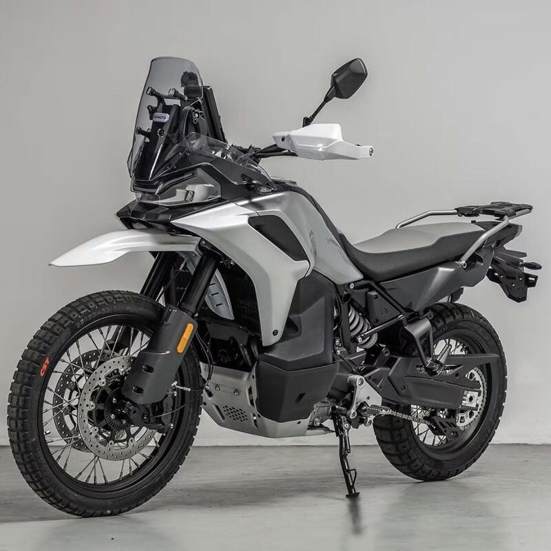 Questo quattro in linea, probabilmente figlio di un progetto interno di CF Moto possiede una architettura classica: doppio albero a camme in testa, la catena di distribuzione a lato del motore, immancabili le quattro valvole per cilindro e nulla di nuovo anche per il cambio a sei rapporti che non vede automatismi vari in stile e-clutch. Ma la vera domanda è: ma quanti cavalli avrà questa creatura? Bene, si presume un’ottantina… quanto basta per divertirsi e sentire il suono fascinoso ed inebriante di un 4 in linea capace di girare forse attorno ai 15/16.000giri.