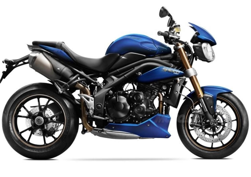 La Speed Triple, oltre alla nuova colorazione Matt Caspian Blue, avrà nuove filettature per i cerchi ruota e nuove decal, entrambe dorate. Il cupolino e il puntale sottomotore, verniciati in tinta, diventano di serie come le protezioni nere per lo scarico. Il tocco finale è dato dal fanale posteriore con lente trasparente e dal paraserbatoio in gomma.