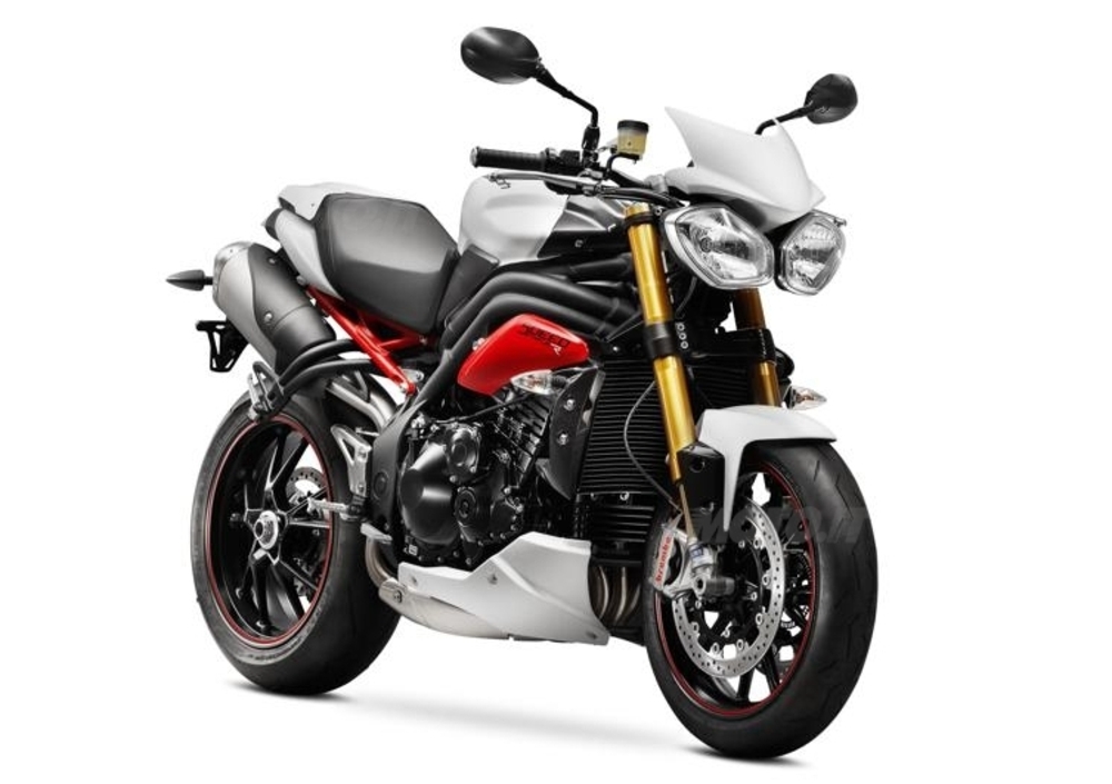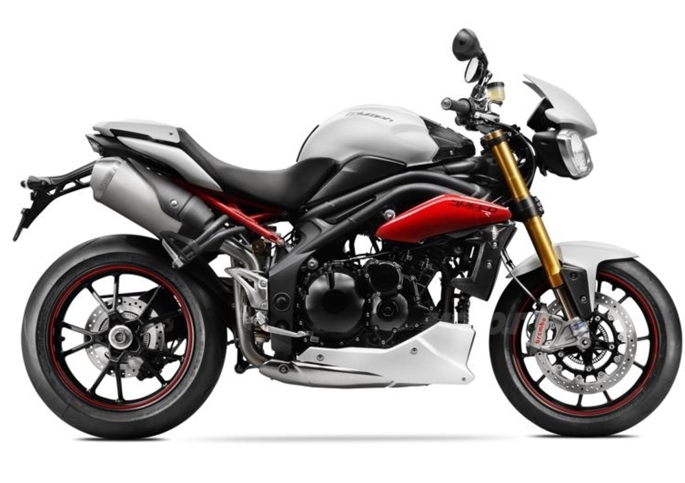 La Speed Triple R, in una nuova versione Crystal White semiopaca, guadagna cerchi in lega decorati con filettature in rosso, la “R” rossa sulle cover del radiatore verniciate in Diablo Red, il cupolino e il puntale sottomotore verniciati in tinta e il coprisella monoposto. Tutto di serie. A questo si aggiunge, come per la Speed Triple, il fanale posteriore con lente chiara e le protezioni nere per l’impianto di scarico.
