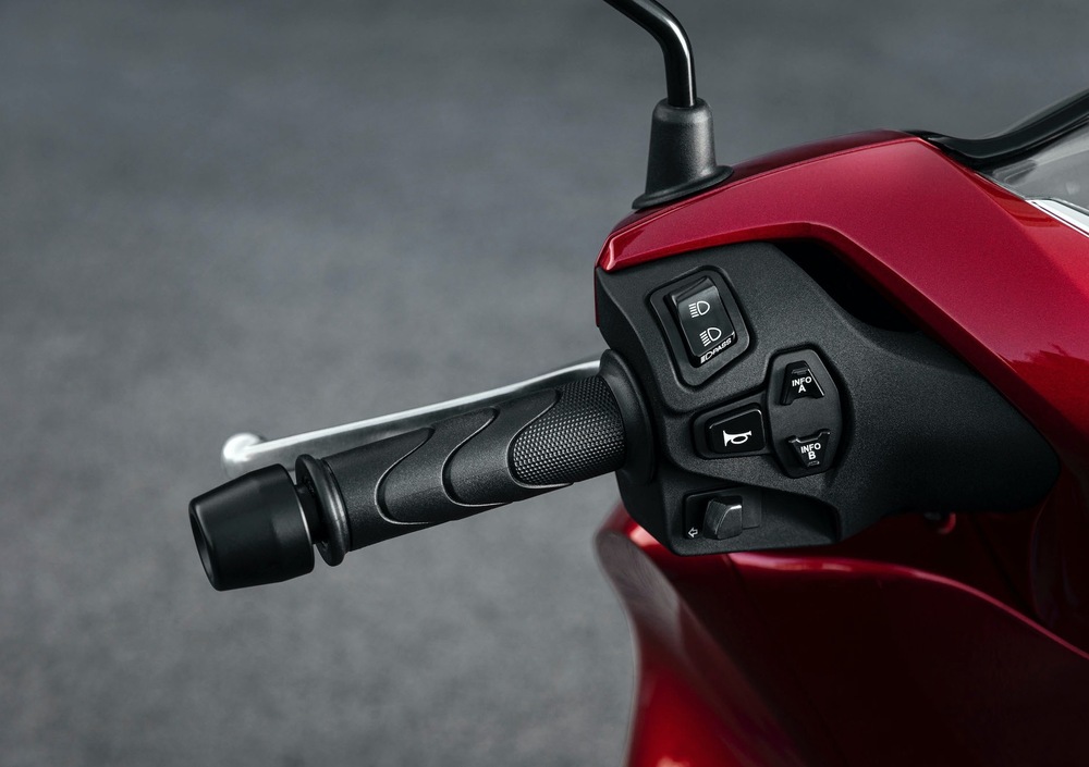 Il cruscotto è un'unità LCD con spie disposte attorno al pannello centrale (presenti anche quelle per Start&Stop, ABS e controllo di trazione HSTC) e gestione affidata al blocchetto sinistro. Lo scooter si attiva con la Smart-key di serie.