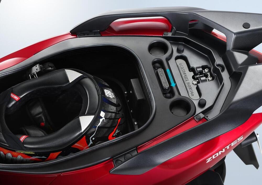 Il vano sottosella può ospitare un casco integrale grazie a un sistema a soffietto (l'idea introdotta da BMW) che impedisce l'avviamento del motore una volta aperto.