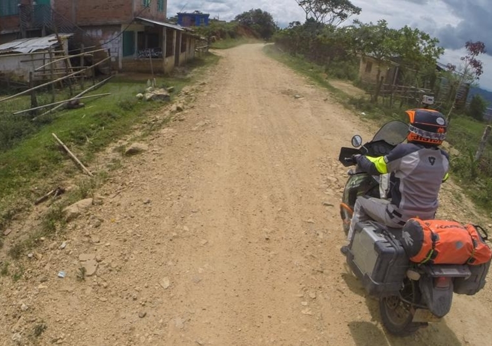 Con nostra totale sorpresa, però, le nuvole hanno girato improvvisamente e la nostra cavalcata è stata non solo asciutta, ma memorabile. Siamo dapprima saliti in quota tra palme e campi di canna da zucchero e banani. Poi, al momento di collinare, siamo stati accolti da una visione mozzafiato della vallata sottostante, alla cui base scorre placido il fiume Cauca. L'ultimo tratto di discesa, di circa 10km si è rivelato abbastanza impegnativo con le moto a pieno carico e le gomme da enduro turistico. Sassi, ghiaia profonda e canali scavati dall'acqua piovana ci hanno accompagnato fino alla fine, quando abbiamo raggiunto un piccolo paesello dove pranzare.