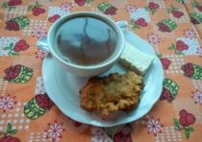In cima all'altro piano abbiamo assaggiato un piatto tipico, l'aguapanela ovvero una specie di the dolcissimo fatto con lo zucchero di canna caramellato. Qui però te lo servono come fosse brodo, accompagnato da una fetta di formaggio e da una grossa frittella abbastanza “gnucca” da masticare. Io ero talmente infreddolito che me lo sono mangiato senza fiatare (doppia porzione di formaggio, pure) ma Sandro non mi è sembrato molto entusiasta.