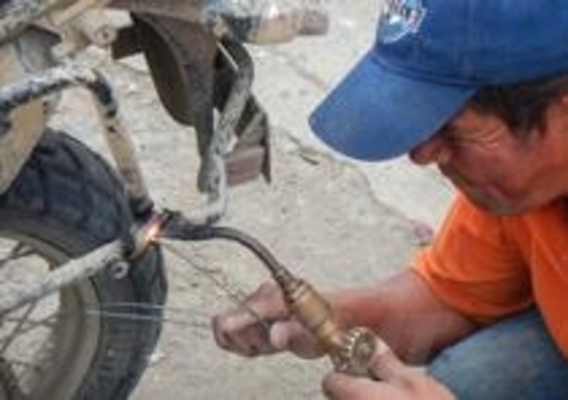 Prima di ripartire da Silvia ho sentito un rumore insolito nella parte posteriore sinistra della mia KLR e ho scoperto che il punto di saldatura della barra stabilizzatrice delle mie borse rigide aveva ceduto. Niente di grave ne sorprendente, specialmente dopo nove giorni di fuoristrada abbastanza duro a pieno carico. In men che non si dica un locale ci ha indicato l'officina di un fabbro che ha saldato l'attacco nel giro di cinque minuti e ci ha permesso di rimetterci in marcia. Non credo che esistano telaietti porta borse in alluminio, ma d'ora in poi mi assicurerò di usarne solo in ferro, altrimenti a quest’ora saremmo ancora bloccati nelle Ande... Voglio vedere dover avremmo trovato un artigiano che saldasse l'alluminio nel cuore dell’entroterra colombiano!
