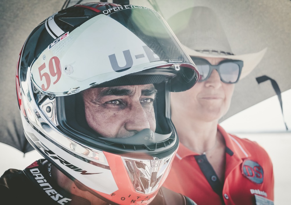 Non esistono prove libere né test, quindi i piloti hanno dovuto imparare sul momento a gestire il comportamento della moto in corsa, il fondo con aderenza variabile e imprevedibile, e in assenza di contakm e altri dispositivi, a calcolare il regime di giri motore giusto in base al rapporto inserito per raggiungere le velocità prestabilite. Basti pensare che “Cherry” (così gli altri concorrenti chiamavano la nostra moto) supera le 150 mph già in prima marcia, con le ruote che tendono a slittare sul sale fino alla quinta!