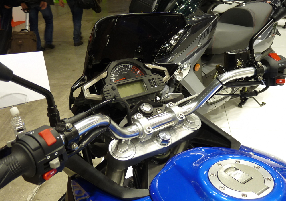 Come si vede, la Over Tourer monta di serie un di kit moto valigie+bauletto, e tubi paracolpi anteriori; ma anche la fanaleria a led e gli specchietti retrovisori a doppia curvatura. Il cruscotto è digitale ma col contagiri analogico, e il piano di seduta è a 795 mm da terra. Inoltre, il serbatoio tiene ben 16 litri, quindi l’autonomia sarà certamente notevole: pensiamo infatti di poter tranquillamente affermare che i 300 km siano il minimo sindacale, prima di affidarsi alla riserva. Quanto al peso, la casa dichiara 175 kg a secco.