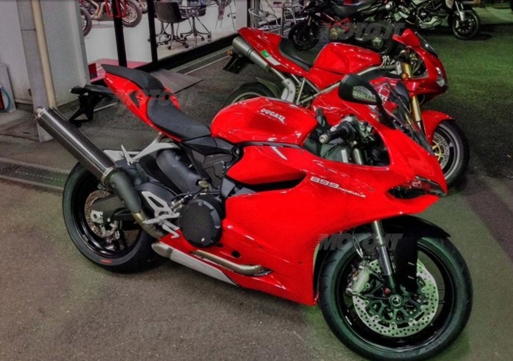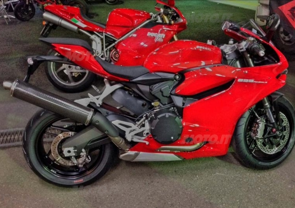 Lo stesso destino è purtroppo toccato alla sorellina minore 899, al quale è stato eliminato lo scarico sottopancia in favore del tubone con mini-scaldabagno in fibra di carbonio che vedete nelle foto; modificato - con una soluzione altrettanto veloce ed orripilante - il coperchio della frizione, ora più simile ad un vasetto di conserva che non ad un particolare tecnico degno di una moto di tale livello.