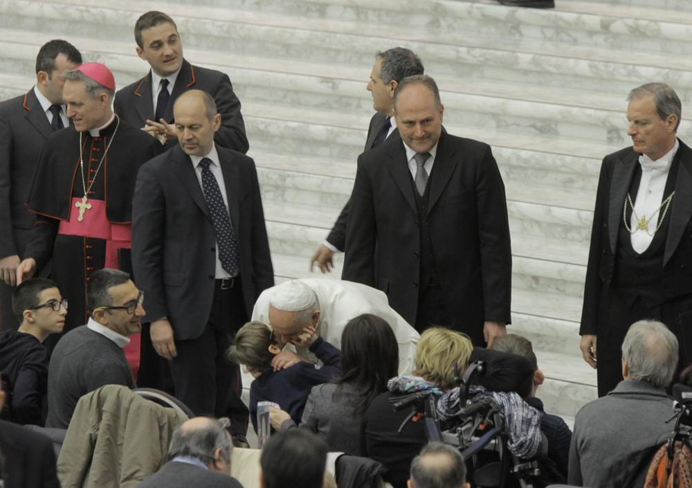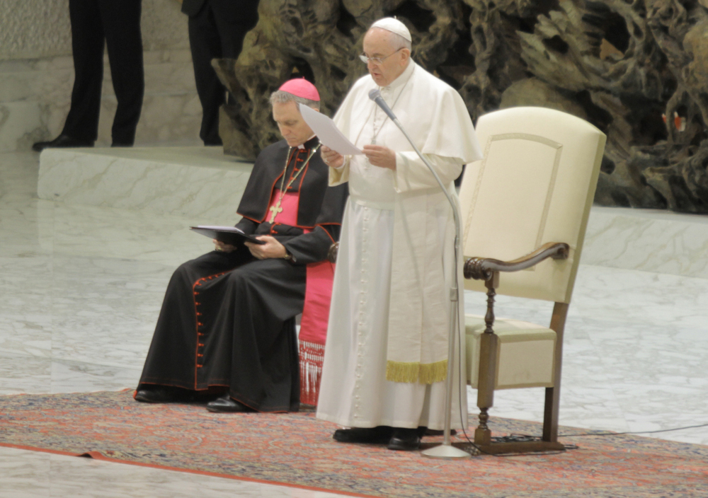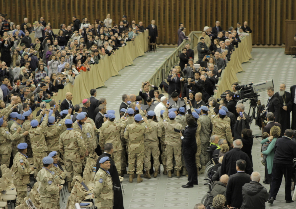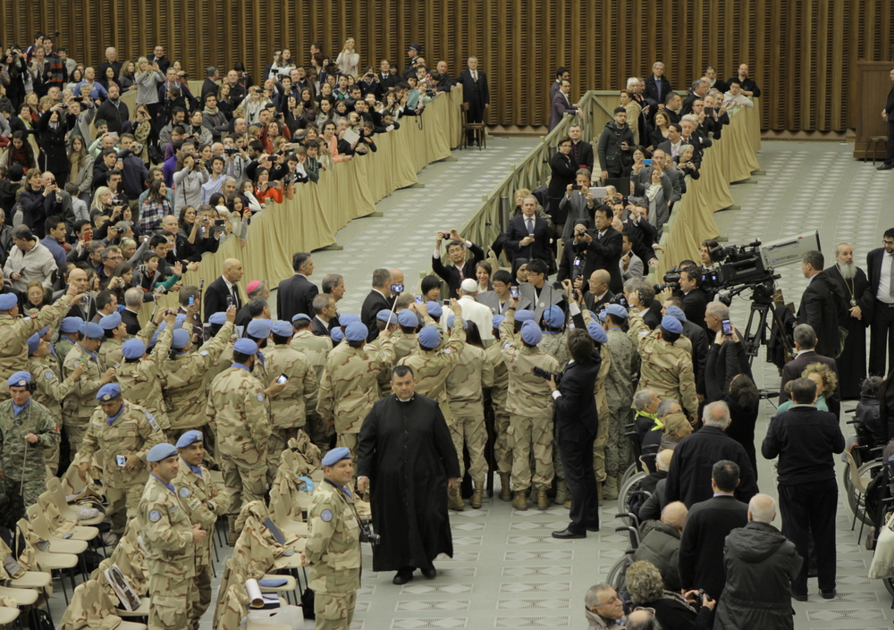 Sala Nervi è gremita da gruppi di fedeli provenienti da tutte le parti del mondo in occasione dell’Udienza Generale del mercoledì. Pochi clericali, qualche suora, molti i ragazzi e tante famiglie. Un compatto plotone di militari Argentini di stanza alle Nazioni Unite. E poi anziani, malati, spose in abito bianco.