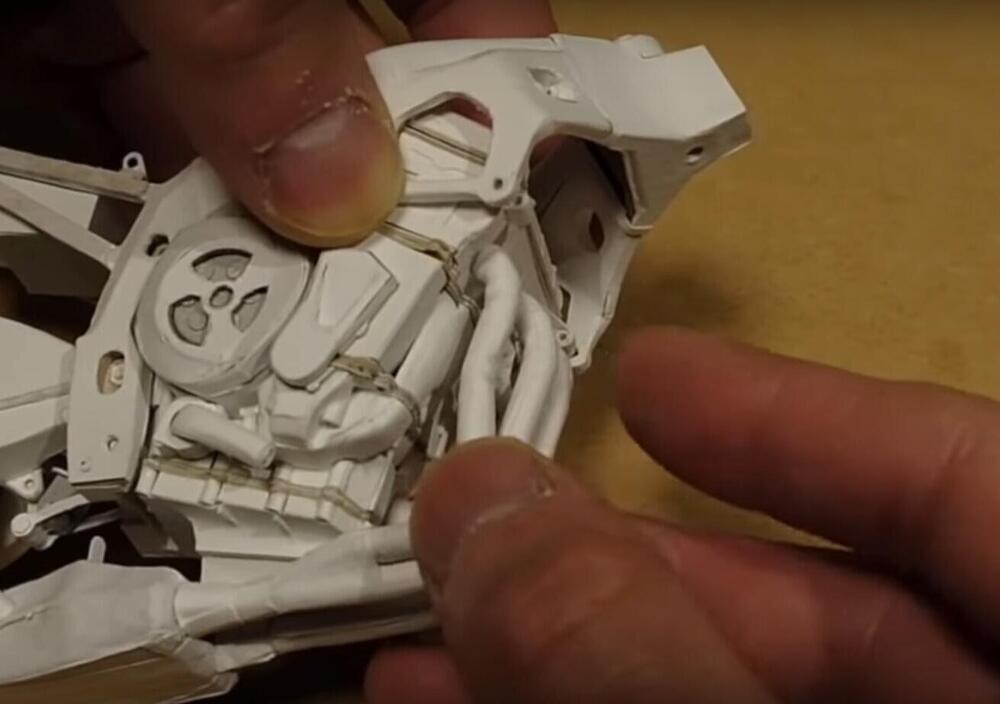 Tutto, a parere di chi scrive, è stupefacente nella realizzazione dei suoi lavori: il fatto che usi qualsiasi tipo di carta, la precisione millimetrica nel disegno, la tecnica nell'affrontare il progetto evidentemente messa a punto in molti anni di pratica e - ovviamente - il risultato finale di rilevo ancora più incredibile se pensiamo che, a differenza dei modelli del bel progetto Yamaha Papercraft di cui abbiamo parlato qualche tempo fa, il nostro non dispone dei disegni originali dei pezzi ma lavora attraverso misure rilevate in proprio e poi tracciate sul foglio di carta.