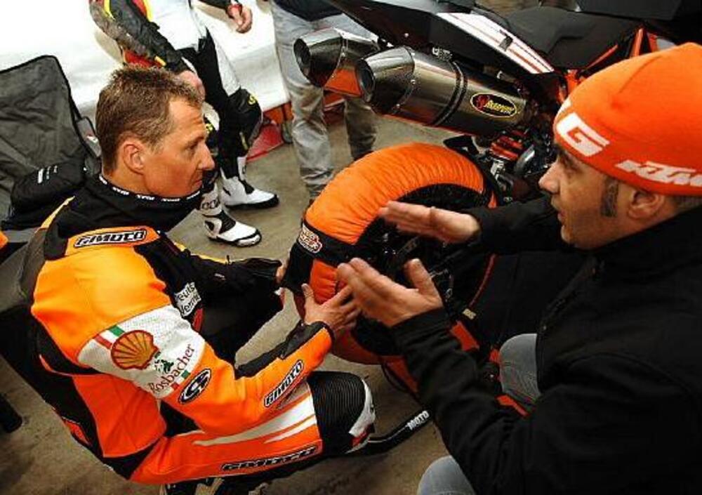 Grande sorpresa alla prima prova del Trofeo KTM Super Duke 2008 con la presenza, a sorpresa, del grande Michael Schumacher.