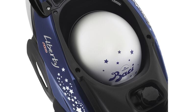 Con la tipica colorazione blu, e la grafica a stelle delle confezioni dei Baci, questa speciale edizione del Liberty 125 va in vendita a 2.999 euro franco concessionario.