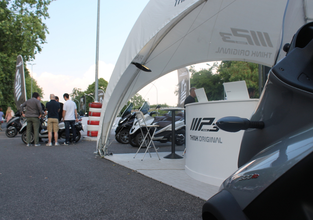 Penultima tappa dell'MP3 Think Original Tour 2015 (quella finale si svolgerà a Genova dal 12 al 14 giugno), evento fortemento voluto da Piaggio in collaborazione con la rete di concessionari locali, offre fino a domenica sera l'opportunità di provare MP3 in versione 300 e 500 cc. I tecnici Piaggio sono a disposizione per illustrare tutte le caratteristiche dello scooter, disponibile nelle nuove versioni ABS/ASR. Partendo da Ponte Milvio, le prove si svolgeranno per le vie di Roma, in gruppi guidati da piloti professionisti.