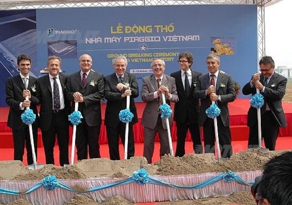 Alla presenza del Vice Presidente del Consiglio e Ministro degli Esteri Massimo D’Alema, dell’Ambasciatore italiano in Vietnam Alfredo Matacotta Cordella e dell’Ambasciatore vietnamita in Italia Nguyen Van Nam, la delegazione si è recata nel distretto industriale di Binh Xuyen Industrial Park (provincia di Vinh Phuc), per la cerimonia di inaugurazione dell’area su cui sorgerà lo stabilimento produttivo del Gruppo Piaggio.