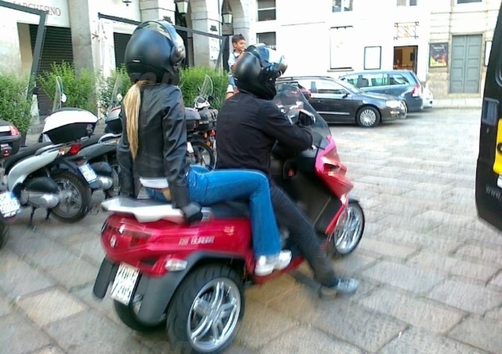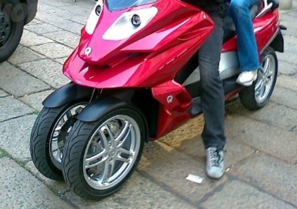 Del prototipo a quattro ruote sono già comparse alcune foto scattate al volo nel centro di Milano dai fortunati colleghi di Euromoto, che hanno beccato il veicolo, già contraddistinto dalla Q di Quadro, durante uno stage approntato per la realizzazione di un video. Foto che evidenziano una carreggiata anteriore ridotta - e più stretta della posteriore – con ruote quindi più vicine tra loro rispetto ai veicoli Piaggio, e di diametro abbastanza generoso: 14 pollici, ad occhio.