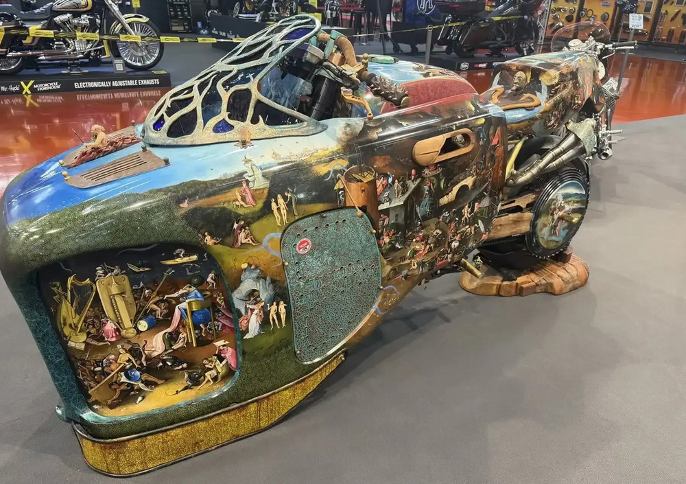 Nel mondo delle personalizzazioni motociclistiche siamo abituati a vedere cromature, carbonio e verniciature spettacolari. Ma ciò che ha realizzato Manuel del Campo Escotet trascende il concetto di custom per entrare di diritto nel mondo delle Belle Arti. La sua creazione, battezzata ironicamente Pifostio (termine spagnolo che indica un gran caos o un pasticcio), è in realtà un tributo meticoloso e profondo al genio di Hieronymus Bosch.