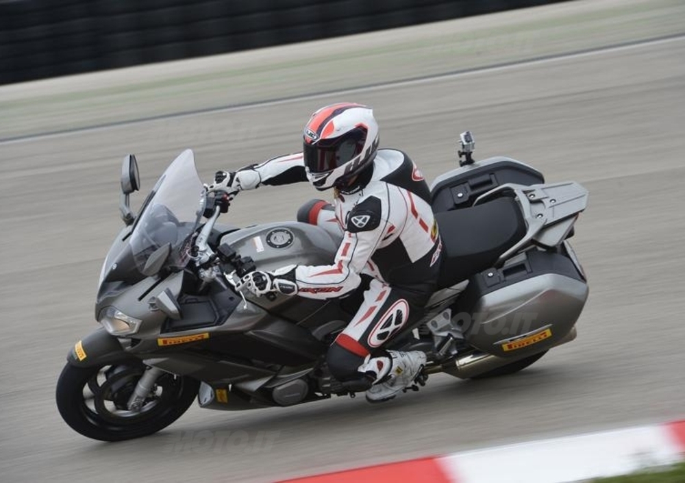 Via la FJR 1300, sotto con la BMW R1200 R, una naked dalle caratteristiche decisamente differenti rispetto alla grossa granturismo giapponese. Anche sulla moto tedesca le GT si comportano bene, ottimo il grip offerto in tutte le condizioni, con una stabilità in frenata, esaltata dall'assenza di affondamento della sospensione Telelever evidenzia il perfetto sostegno offerto dalla carcassa.