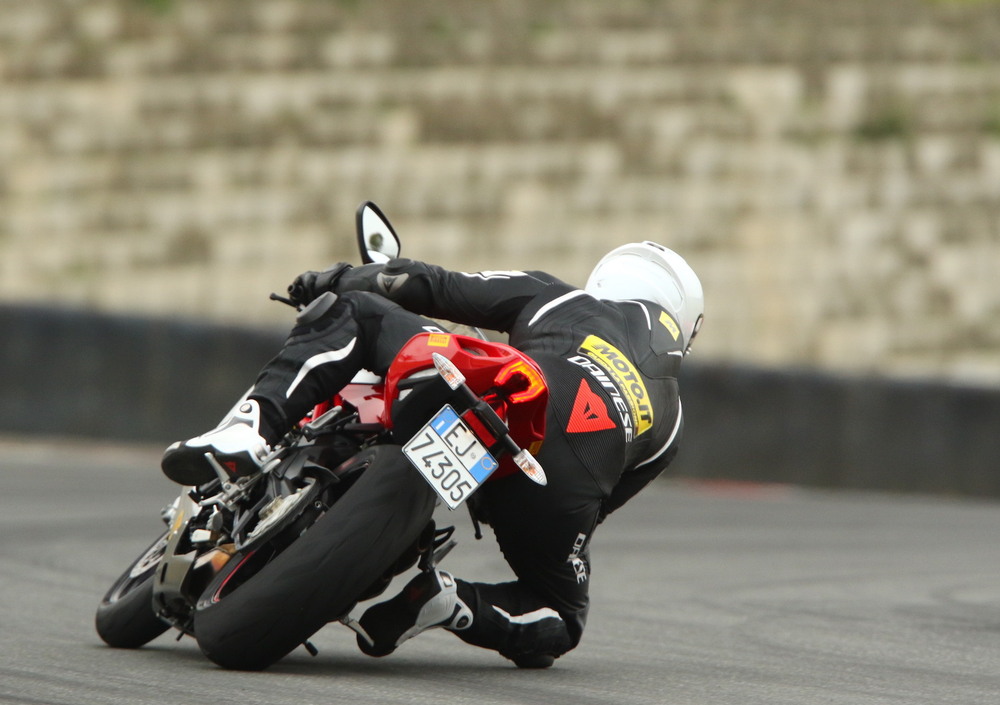 Ci aspettiamo molto dalle Diablo Rosso Corsa II e in tutta sincerità, la loro risposta alle nostre sollecitazioni è a dir poco brillante. Premettiamo che le termocoperte non sono necessarie, e questo significa che queste gomme sono del tutto insensibili ai cicli termici (riscaldamento/raffreddamento), inoltre colpiscono per la rapidità di entrata in temperatura, mezzo giro e si può spalancare il gas senza tanti problemi, con pressioni di utilizzo consigliate di 2.5 bar sia per l'anteriore sia per il posteriore (su strada si viaggia con i canonici 2.5/2.9). La rigidità della carcassa emersa su strada ha come risultato che in pista le Diablo Rosso Corsa II difficilmente sembrano essere in difficoltà, sia durante le frenate più tirate, anche fin dentro la curva, sia in uscita dalle curve stesse, sotto la spinta dei duecento cavalli e le valangate di coppia delle superbike odierne. La struttura è sicuramente più sostenuta, come è logico aspettarsi da un pneumatico che è studiato e realizzato per carichi superiori a quelli di un prodotto racing in mescola (guida in coppia o con qualche bagaglio annesso), ma il comportamento generale è davvero esente da critiche.
