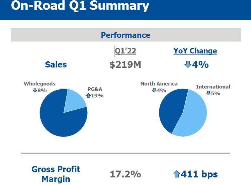 L'85% delle vendite sono state registrate in Nord America e già questo dato dà l'idea del posizionamento internazionale di Polaris che è molto specializzata nei mezzi da fuoristrada a quattro ruote (Ranger, RZR, General), motoslitte e fuoristrada militari, oltre che essere nota appunto per le moto Indian. I ricavi in Nord America sono stati di 1.667 milioni di dollari, quattro in più rispetto al primo trimestre del 2021.