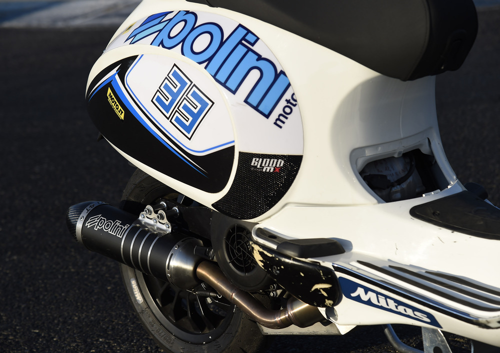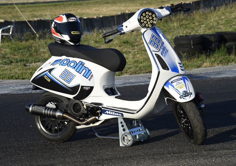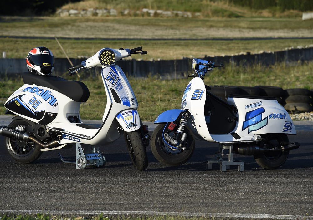 Un cappello introduttivo doveroso e sacrosanto, come lo è il sapere che gli Zip e le Vespe “polinizzate” vanno come razzi. Ci siamo saliti e abbiamo provato a sfidare i piloti della categoria Vespa 185 4T... Un campionato “aperto” Dicevamo. Arriviamo in pista, al terzo weekend di un campionato che non vede impegnate solo le Vespe, 4T e 2T, ma anche i velocissimi scooter. L’aspetto che più ci è piaciuto, al di là dell’altissimo livello raggiunto dai mezzi e dai piloti, è la decisione della dirigenza Polini di proporre un campionato “aperto”, ovvero aperto a tutti i piloti, preparatori e team, liberi di utilizzare qualsiasi prodotto, di qualsiasi produttore. Un’idea lungimirante, che dà la misura della forza di un Marchio.