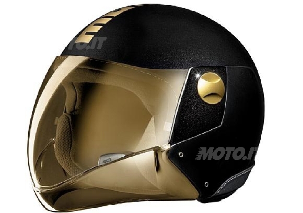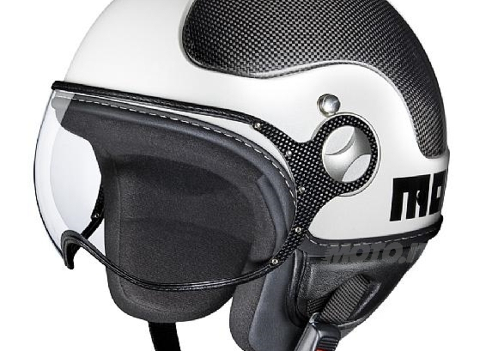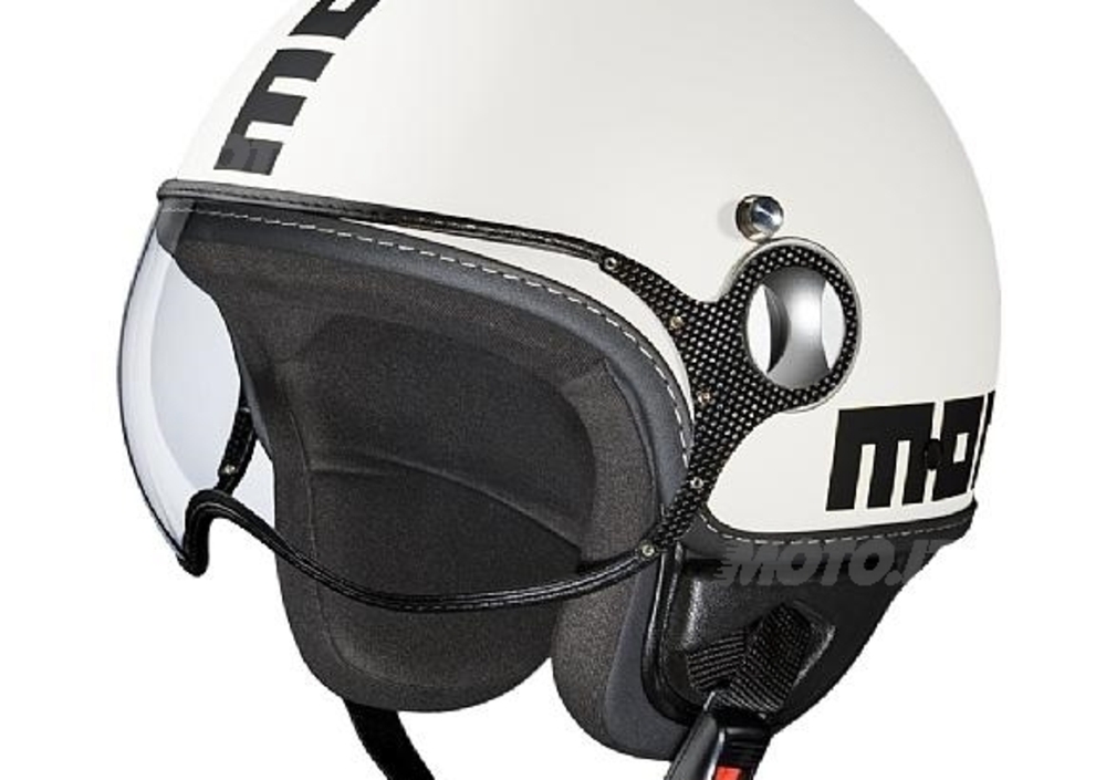 Il modello MINIMOMO rinnova il look con la nuova visiera parasole fissa, in trasparente metacrilato fumè, e con i paraorecchie removibili.