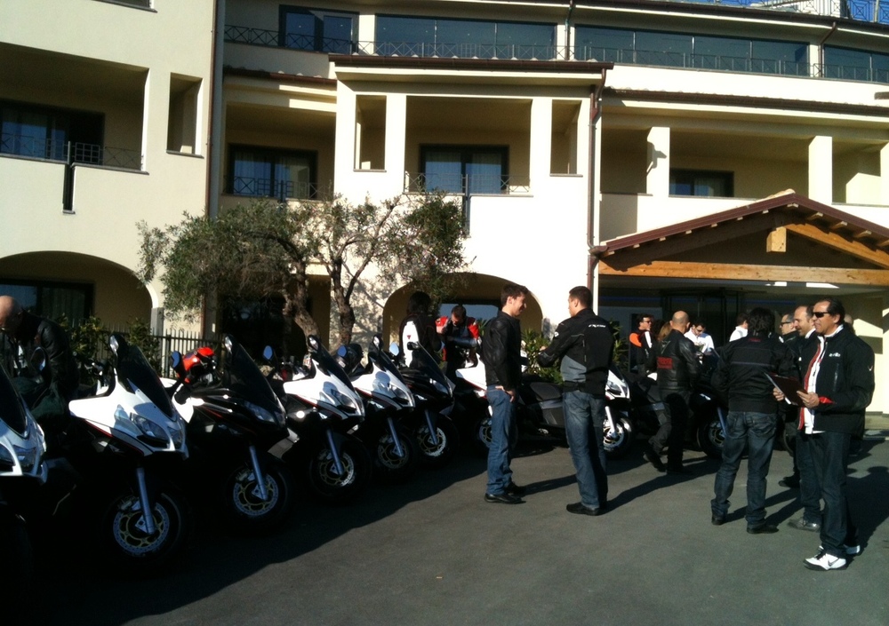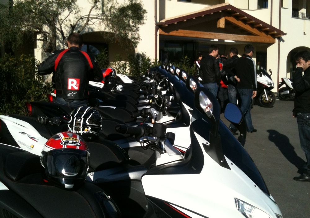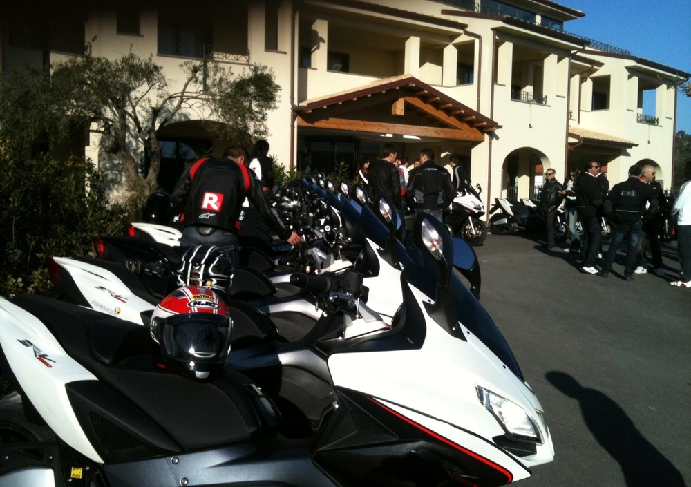 Questa volta ci troviamo in riva al mare, nel cuore della Maremma toscana, e precisamente all'Argentario, quindi a poche miglia dalla bella e tristemente nota Isola del Giglio. Questa volta siamo ospiti di Aprilia, invitati a provare il maxiscooter più potente del mondo. Ovvero quell'SRV850 che è cugino strettissimo del Gilera GP800 che, come sappiamo, al di là delle sigle di comodo monta il medesimo motore da 839,3 cc.