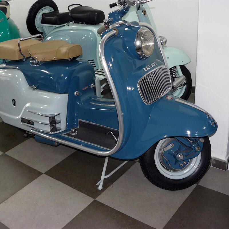 L’Aermacchi ha fatto il suo ingresso nel mondo delle due ruote con alcuni scooter a due tempi dotati essi pure di ruote da 17 pollici. Il primo è stato il 125 N, più noto come Cigno (ma il progettista, Lino Tonti, lo chiamava “Macchino”), entrato in produzione nel 1951.