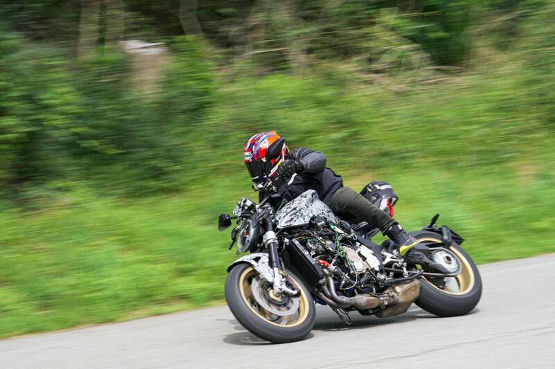 Seppur camuffati, serbatoio e fianchetti sono definitivi, così come il nuovo telaio, rivisto nelle geometrie, e il forcellone.