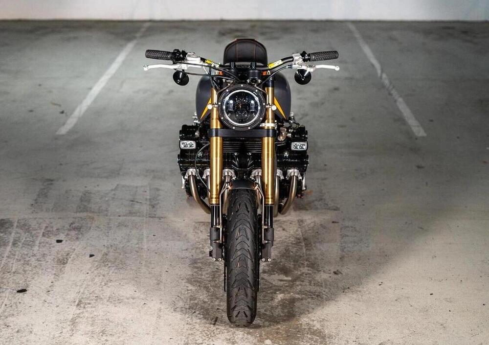 Le modifiche più evidenti partono dalle sospensioni e dal desiderio di montare pneumatici dalle misure moderne. Via così il forcellone originale e la forcella di serie, sostituiti da un'avantreno preso da una Suzuki Hayabusa seconda serie e un forcellone di derivazione Aprilia RSV4 del 2010 guidato da un ammortizzatore Ohlins TTX: la CBX è una seconda serie, quella con il monoammortizzatore, tuttavia non deve essere stato semplicissimo agganciarlo al telaio originale e realizzare gli attacchi per il mono moderno, quindi onore al merito a Purpose Built Moto. Sono state rivoluzionate le sovrastrutture, abbandonando la carenatura, risagomando il serbatoio e costruendo un codino che integra minuscole luci di posizione e di arresto che fanno il paio con il gruppo ottico anteriore a LED. Bello il piccolo parafango con le staffe di supporto a sei punti di attacco, così come molto evocativi sono i sei scarichi - tre per lato - che danno al motore un sound inconfondibile - vedere il video per credere.
