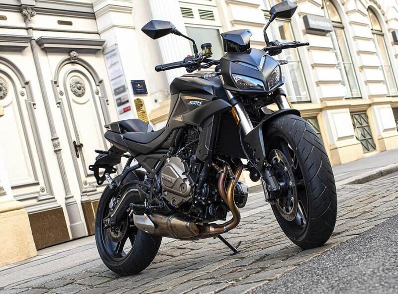 Sorella minore della top di gamma SRK 700 è la SRK 400, una naked dedicata ai possessori di patente A2 il cui motore bicilindrico da 400 cc esprime 41,5 cavalli a 9.000 giri e 37 Nm di coppia a 7.500. Spiccano il dashboard TFT a colori, i comandi al manubrio retroilluminati, l'impianto di illuminazione Full LED e il doppio disco anteriore da 260 con profilo a margherita: 186 kg il peso con il pieno e 5.799 euro il prezzo in Germania.