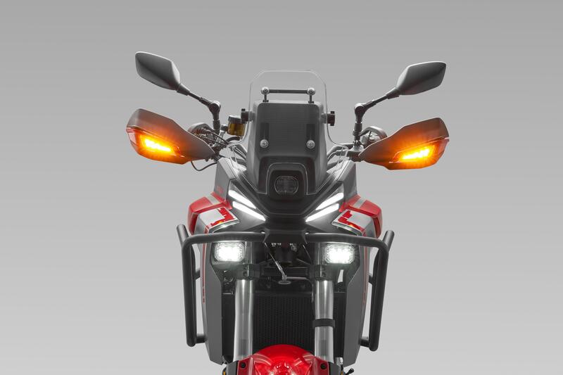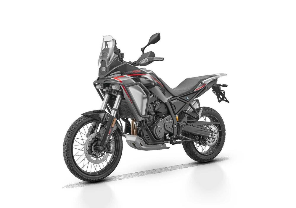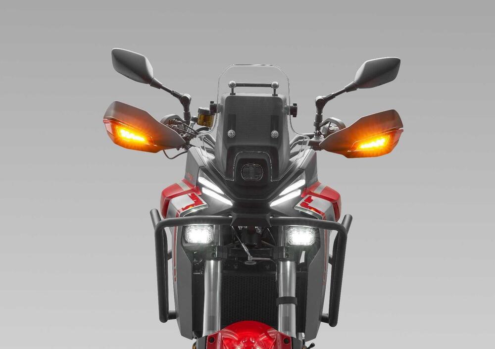 La nuova SRT 450 RX è stata pensata per essere accessibile a neofiti ma strizza l’occhio anche ai più esperti che cercano una moto facile, leggera e pronta a tutto. Il telaio è in acciaio tubolare, il forcellone è in alluminio, le ruote sono a raggi 21" all’anteriore e 18" al posteriore. Interessante la scelta dell’allestimento ciclistico che vede sospensioni Marzocchi a lunga escursione (regolabili e con escursione di 200mm). I freni sono firmati Brembo, davanti un monodisco da 320mm con pinza radiale, dietro disco singolo da 240mm; naturalmente ABS disinseribile al solo asse posteriore per praticare dell’off-road puro. Molto capiente il serbatoio, i suoi 18 litri di capacità uniti al consumo ridotto del motore garantiscono grandi percorrenze. Infine lo schermo TFT da 5" con Bluetooth mirroring per navigazione smartphone, full LED, manopole/sella riscaldabili, parabrezza regolabile. In optional, tris di valigie in alluminio a 500 euro.