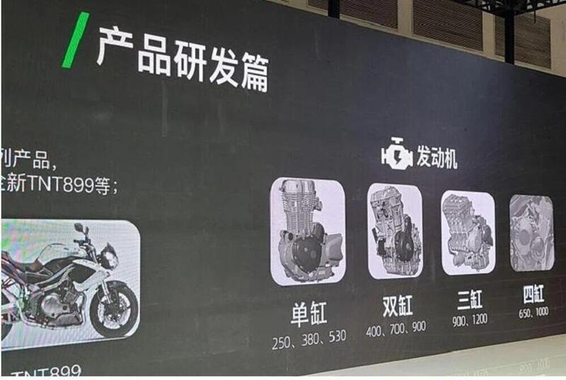 Se pure in sede di presentazione delle future attività QJMotor al China International Motorcycle Trade Exhibition (CIMA) del 2020 le cilindrate per i nuovi motori bicilindrici sarebbero state individuate nella cubature di 400, 700 e 900 cc (potete notarlo nella foto più in basso), pare invece che per la SRT 800 che i colleghi di Cycle World hanno scovato nelle schede di omologazione cinesi sia stato effettivamente adotatta l'unità QJ288MW con cilindrata di 800 cc e, data la strettissima parentela tra QJMotor e Benelli (dal 2005 Benelli fa parte della scuderia di Qianjiang Motorcycle, proprietaria di entrambi i marchi), non sarebbe a priori da escludere in futuro una ricaduta sulla produzione di Benelli, quantomeno in Cina.