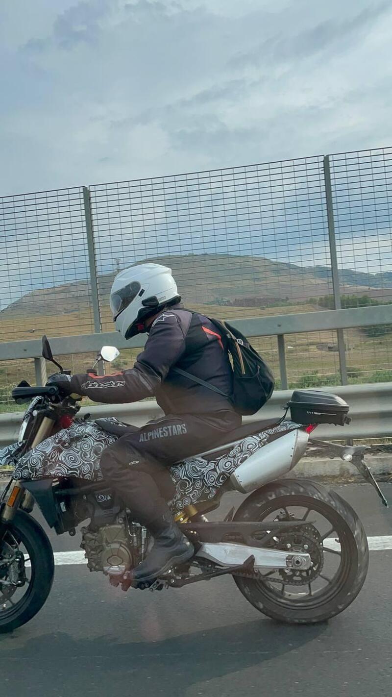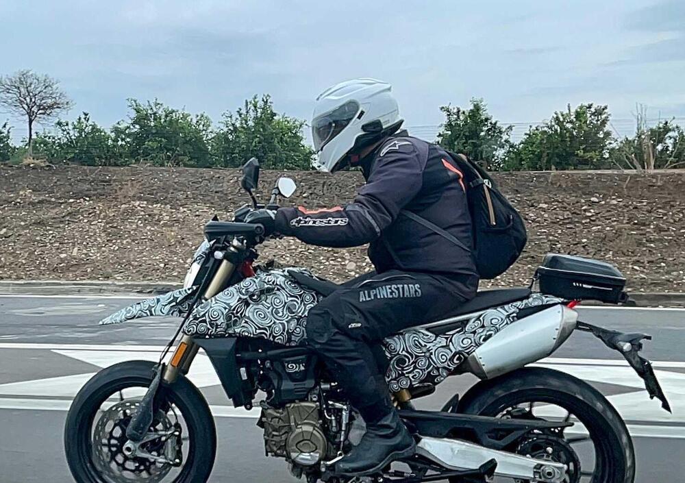 Ma è sul motore che si concentrano gli interrogativi: sembra un monocilindrico (ma non vedendo la parte anteriore non è totalmente da escludere che possa essere un bicilindrico in linea) e quindi collocherebbe la moto nell'universo non troppo frequentato delle moto come la KTM SMC R e delle sue omologhe GASGAS e Husqvarna. Ma, soprattutto, potrebbe essere una sorellina minore dell'Hypermotard. Ce lo fanno pensare il design e la cura di certi componenti che si vedono in foto, come i carter motore.