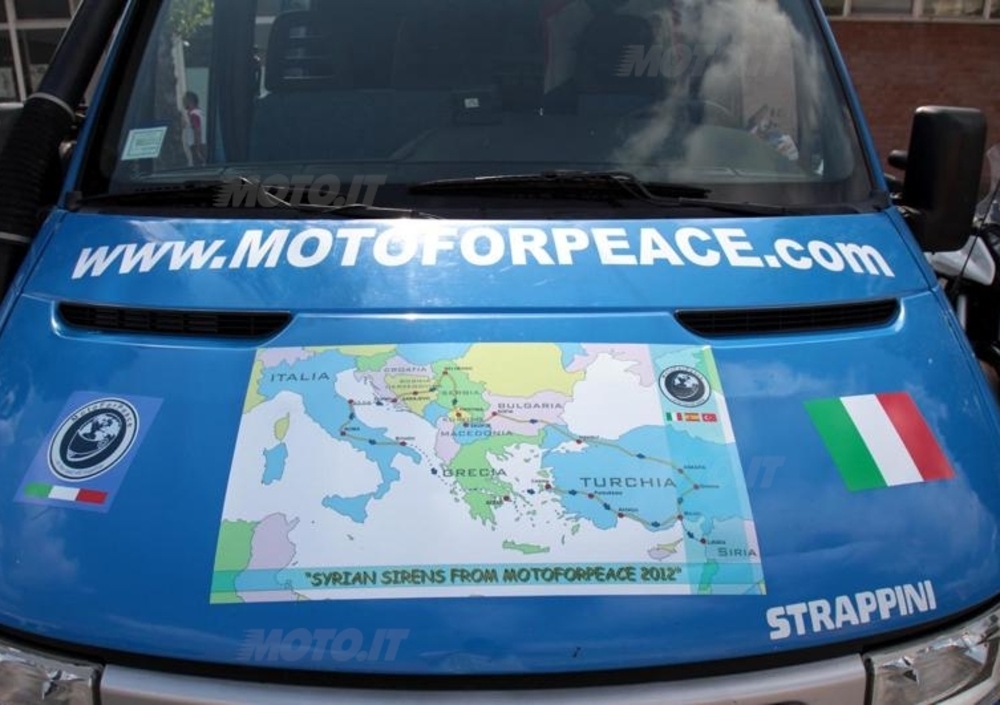 Partiti! Con la “benedizione” istituzionale rappresentata dal saluto ufficiale portato dal Presidente della Camera dei Deputati, Gianfranco Fini, i veicoli della spedizione di MotoforPeace 2012 hanno lasciato le austere architetture dei palazzi del centro di Roma, puntando i cursori dei navigatori satellitari verso il porto di Brindisi, da dove si imbarcheranno alla volta di Patrasso. Ha avuto quindi un prologo molto suggestivo, circondato dalla curiosità di romani e turisti, il nuovo ed impegnativo viaggio di MotoforPeace: denominato “Syrian Sirens from MotoForPeace”, ha lo scopo di donare tre ambulanze, colme di prezioso materiale sanitario e didattico, all’Ordine Carmelitano di Madre Maria Agnes della Croce che, dal suo monastero situato a San Giacomo a Qara - posto a circa 100 km a nord-est di Damasco - raccoglie profughi e bisognosi e cerca, come religiosa carmelitana, di difendere la religione cattolica e la pace interna, che un tempo regnava in Siria anche tra musulmani e cristiani.