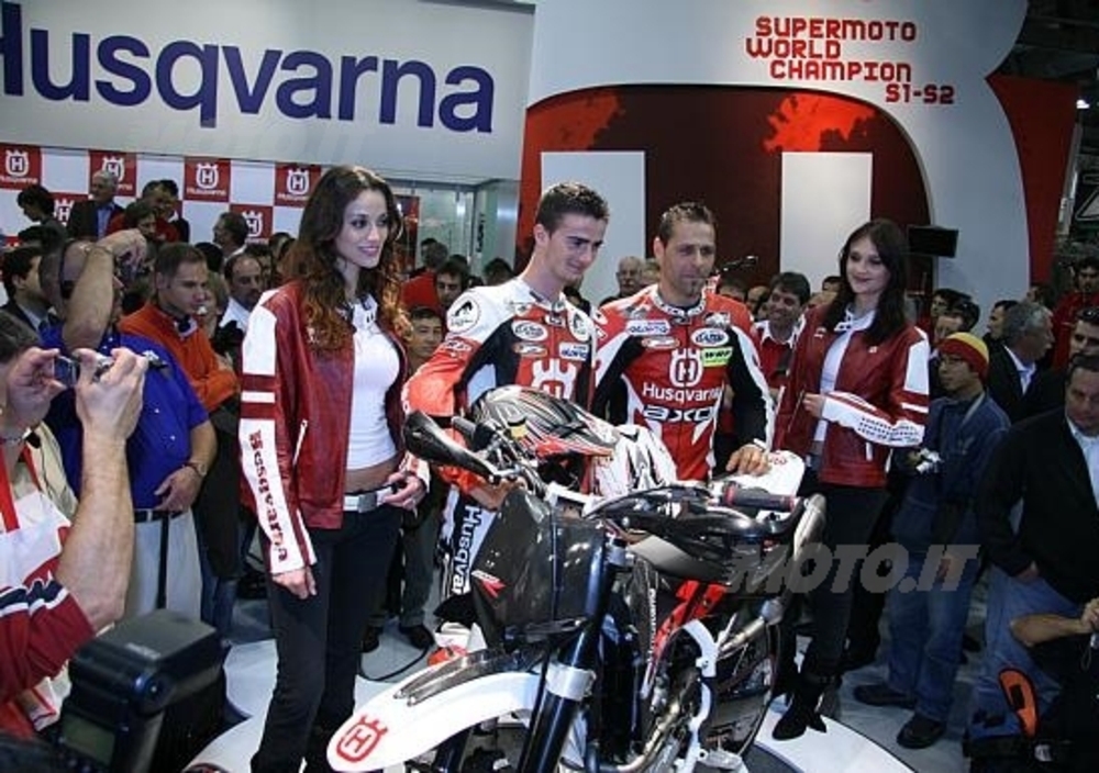 I modelli supermoto 2008 fanno la loro prima apparizione mondiale qui. Hanno diverse nuove e importanti funzionalità in comune con i modelli di moto da fuoristrada, come per esempio il motore a iniezione e la concezione del veicolo. Un'altra novità di questi modelli è il braccio oscillante più corto, di cui le nostre moto da corsa sono già dotate.