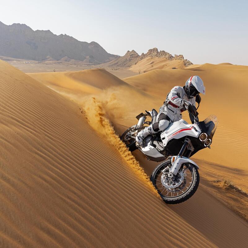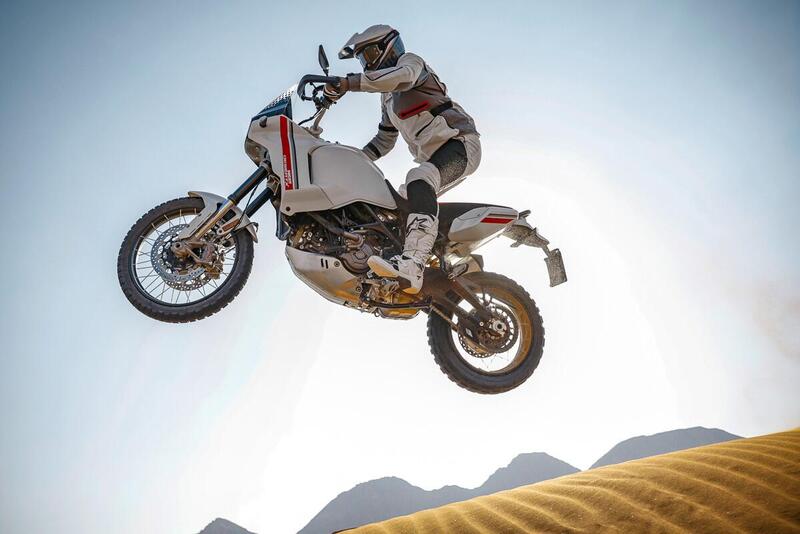 Antoine Meo è rimasto stupito dalla “leggerezza” dell’anteriore al battesimo della DesertX, ma i punti cardinali dei nostri test, Gissi e Perfetti, si entusiasmano per trattabilità e agilità di Ténéré e Tuareg. Di Meo io non sono neanche parente, ahimé, di Gix e Perfetto mi fido ciecamente, e deve aver colpito anche voi il loro stupore per certe dolcezze della Cagiva di Orioli pensando alla nuova bomba Ducati.