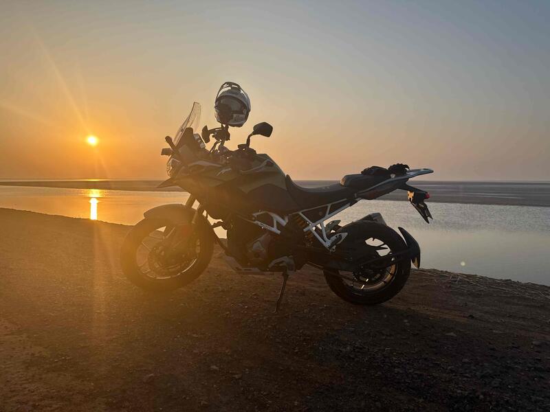 TVS ha peraltro realizzato una motosport arena a poca distanza, dove un pomeriggio andiamo a vedere l'entusiasmo dei locali per stunt, dirt track e freestyle: show, sabbia e cultura popolare, un mix contagioso che però nulla può contro l'impatto dell'alba vista dalla Road to Heaven.