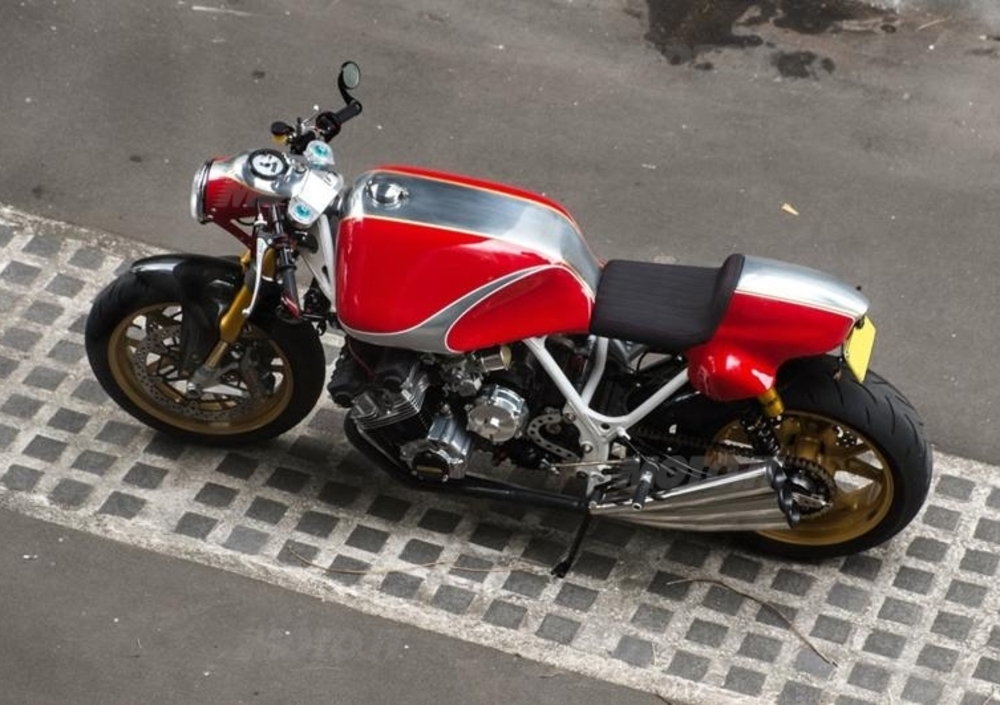 Il lavoro sulla parte motoristica si è concentrato sul ripristino del propulsore, fermo da tantissimi anni dopo aver percorso solo 9.000 miglia - circa quindicimila chilometri. Guarnizioni, segmenti e cuscinetti sono stati sostituiti; le teste sono state sabbiate a vapore e rifatte completamente per precauzione, così come i cilindri. Dopodiché tutte le parti sono state lavorate per conferirgli finiture in tono con i crismi tradizionali delle Café racer e i colori racing Honda.