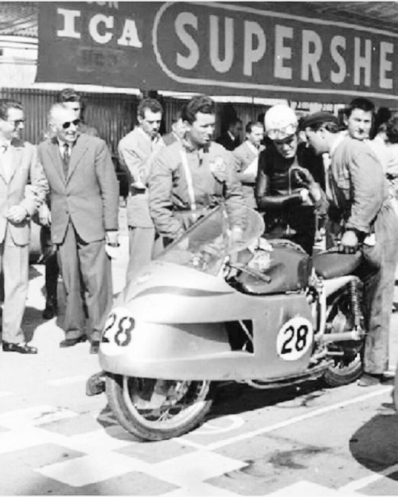 Il suo debutto avvenne l'11 aprile 1955 a Imola. Con una moto nuovissima, molto diversa dal suo Norton Manx, ma che per uno che sapeva guidare anche “in ginocchio”, non rappresentava certo un problema.