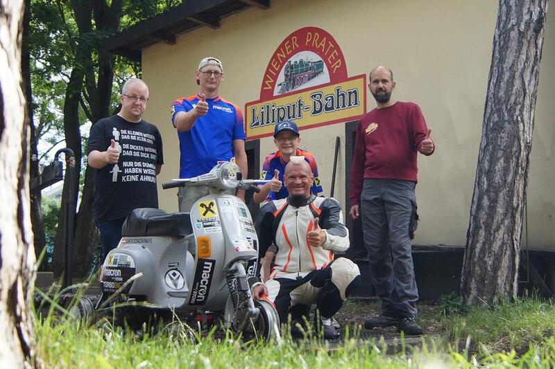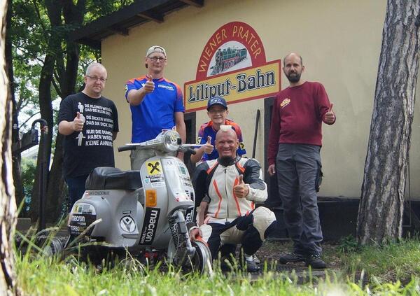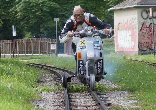 Günter Schachermayr è l'uomo dei record in Vespa e dall'incredibile fantasia. Questa volta, per trasformare l'iconico scooter in un treno, oltre alle difficoltà tecniche si sono sommate anche quelle burocratiche. Transitare sui binari dei treni infatti è vietato e qualora si ottenesse anche un permesso qualunque ritardo comporterebbe costi incredibili. Se a causa di un qualunque imprevisto, di una rottura o di una caduta avesse causato un ritardo anche minimo, allo spericolato stuntman austriaco sarebbe potuta arrivare una sanzione fino a 70.000 euro... al minuto! Schachermeyr non si è arreso e alla fine si è ricordato che la soluzione era proprio sotto al suo naso. Nel Prater, il parco giochi di Vienna famosissimo per la sua ruota panoramica, c’è anche la Liliputbahn: una ferrovia in formato ridotto costruita nel 1928 e lunga 3,9 km.