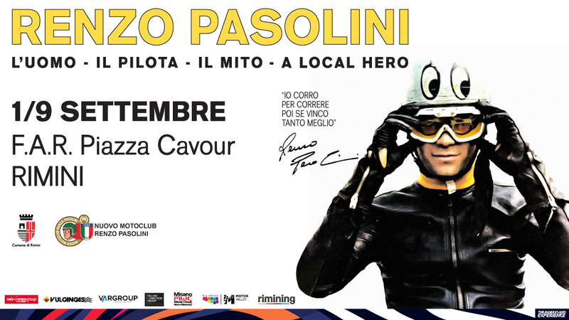 Dal primo al 9 settembre, nella cornice degli eventi "MotoGP the Riders' Land Experience", gli spazi della Fabbrica Arte Rimini di piazza Cavour saranno lo scenario per celebrare un campione e raccontare un personaggio, così particolare, così diverso, ma anche così “riminese nel suo essere e che pochi conoscono a fondo. “Renzo Pasolini, l’Uomo, il Pilota, il Mito, a local Hero” è il titolo dell’iniziativa.