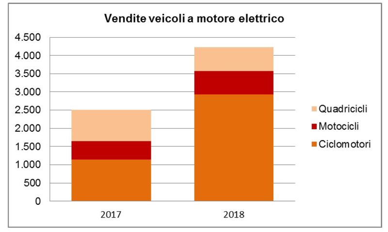 i ciclomotori elettrici sono saliti a 2.928 unità (+156%), le moto a 648 unità (+29%), mentre i quadricicli sono scesi a 654 unità (+24%).