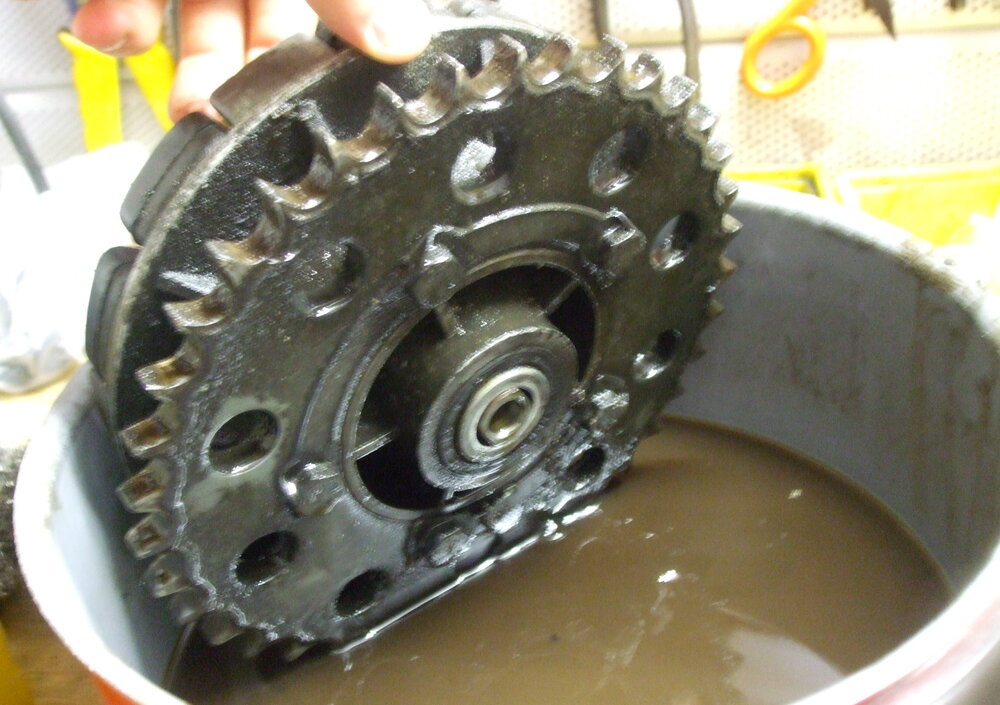 La copertina della sella è stata sostituita con una nuova, così come tutta la bulloneria, che era completamente arrugginita (è doveroso ringraziare, a tal proposito, un paziente amico rappresentante di bulloneria e affini!). Per terminare il tutto, abbiamo eseguito una revisione completa della forcella e degli ammortizzatori posteriori.