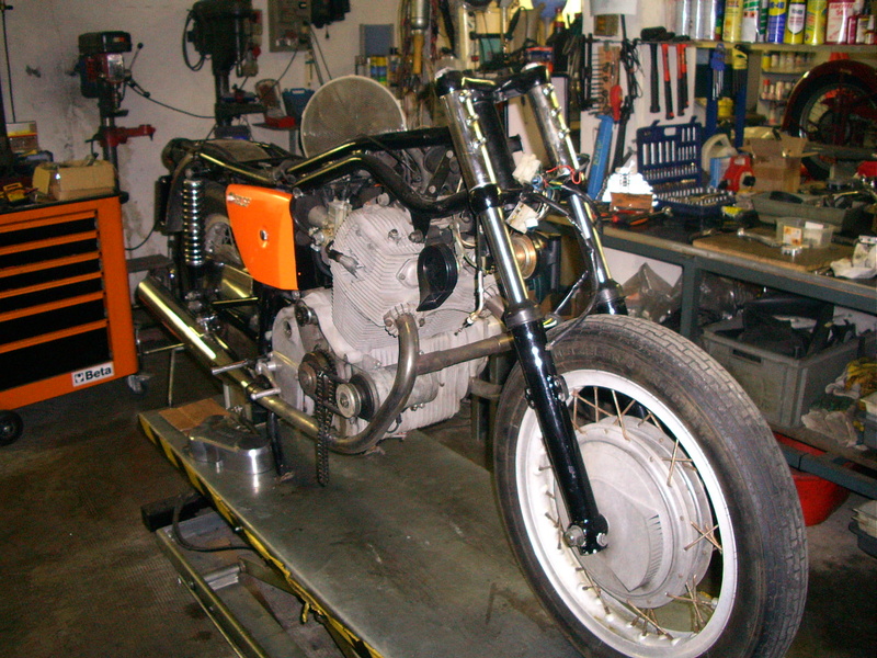 Una volta tolte tutte le sovrastrutture ed arrivati al nudo telaio, Soiatti ha dovuto rimediare alla crepa nel telaio dovuta alle forti vibrazioni generate dal motore. La parte posteriore del telaio è stata tagliata simmetricamente e, all'interno dei tubi tel telaio è stata inserita un'anima in acciaio che, a sua volta, è stata innestata nelle rispettive estremità della parte staccata, in modo tale da fornire un appoggio sicuro alla sella. Una volta completato il lavoro sul telaio, lo stesso è stato sabbiato e riverniciato nel caratteristico nero lucido.