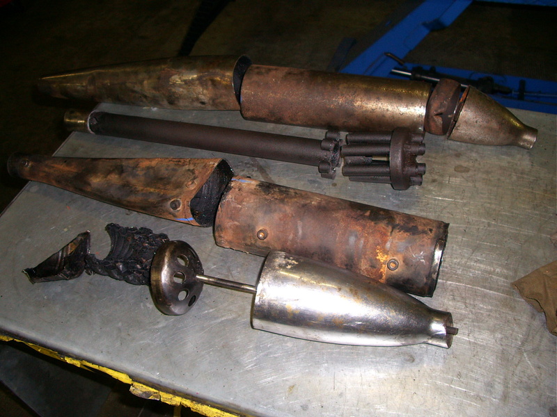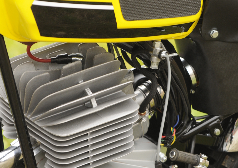 Uno dei lavori più complessi, anche per le mani di chi “mastica” moto d'epoca da più di due decenni, è stato ripristinare l'impianto di scarico. La ruggine, assieme ad un maldestro tentativo di un precedente proprietario che aveva appiattito a “sogliola” il silenziatore cromato, ha richiesto un intervento di riparazione più invasivo del previsto. Anche se in un primo tempo si era optato per la sostituzione dello scarico completo, dopo alcune settimane di vane ricerche si è optato per tagliarlo in modo da ricostruire la parte silenziante, cosa non facile visto il complesso labirinto di lamiera. In questo modo il silenziatore, dopo una precisa saldatura e cromatura, è tornato al suo stato d'origine, come si può ben vedere dalla immagini.