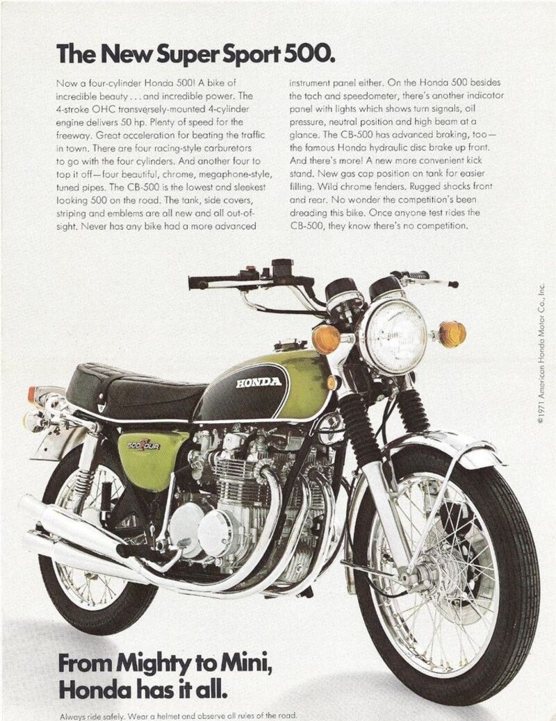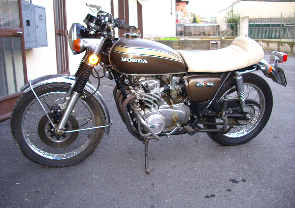 Nata dopo la CB 750 Four quando nessuno si aspettava la produzione di quadri-cilindriche di minore cilindrata, non deriva direttamente dalla “sorella maggiore”, con la quale condivide solo il numero e la disposizione dei cilindri, oltre alla distribuzione monoalbero con comando a catena, ma nasce da un progetto a sé stante.